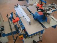combinata a 7 lavorazioni - carrello a squadrare con supporto a bandiera - gruppo ruote con timone per spostamento - due motori v.220 monofase kw.1,5/2,2 - larghezza pialla mm.260 - altezza pialla spessore mm.120 - diametro lama in widiam 250 mm - gruppo cavatrice in ghisa - struttura e pianali macchine in ghisa - peso macchina 245 kg - fresa per toupie in dotazione - normativa ce - macchina nuova adatta alla realizzazione di qualsiasi oggetto in legno . Piccola e pratica riassume in un corpo di 64x102 cm sette macchine: la pialla a filo e la pialla a spessore , dotate di piani in ghisa larghi 26 cm e con albero pialla a tre coltelli . La sega circolare con un diametro di 250mm e con un'altezza di taglio 8,5 cm. La cavatrice, con mandrino universale e dotata di un piano di lavoro con i finecorsa regolabili e morsetto blocca pezzo. La toupie lavora in verticale con motore indipendente e dotata di un albero di 30 mm smontabile per la sostituzione e con regolazione verticale di facile utilizzo . Un carrello a squadrare che scorre su sei cuscinetti , in grado di sostenere anche pesi elevati e dotato di un goniometro per angolare qualsiasi taglio. La macchina dispone di tutte le bocchette di aspirazione.Inoltre sono presenti dei micro switch che bloccano il funzionamento della macchina nei casi di pericolosita'. E' dotata di due potenti motori e ruote con timone per lo spostamento . La combinata è di facile assemblaggio, consente un veloce smontaggio e rimontaggio quindi comodo trasporto e immagazzinaggio. Accessori in dotazione: Paletta spingipezzo, allineatore per coltelli pialla , cappa di aspirazione pialla a filo e a spessore , protezione a ponte per pialla, protezione laterale per pialla , spingipezzo per pezzi piccoli, protezione per sega circolare con bocchetta di aspirazione, guida per pialla e sega inclinabile , coprimandrini, piano cavatrice con regolazione tridimensionale e fine corsa completi, goniometro con premilegno, prolunga piano sega toupie in uscita, set chiavi di servizio, cuffia toupie con protezioni , albero toupie mm.30 - ganci per il sollevamento. Accessori compresi : testa fresa portacoltelli - punta per cavatrice - circolare al widiam hm - coltelli pialla montati - ruote con timone per lo spostamento Parametri tecnici: PIALLA A FILO : diametro albero 72 mm, velocità albero 4500 g/min , misura coltelli pialla 260x30x3 mm , massima larghezza piallabile 260mm, lunghezza totale dei piani mm.1000, massimo asporto 3 mm, inclinazione della guida pialla 0-45 gradi. PIALLA A SPESSORE: massima larghezza piallabile 250mm , spessore piallabile 6-120 mm, lunghezza minima del pezzo da spessorare 150mm , velocità di traino 6,5mt/min, rulli di traino primo in ingresso dentato in acciaio secondo in uscita liscio , traino motorizzato con leva per il disinserimento. SEGA CIRCOLARE: misura della lama 250x3,2x30mm , massima altezza di taglio 85mm , velocità della sega circolare 5.500 giri/min , massima di taglio sul carrello mm.300 mm , dimensioni del carrello mm.500x440, lunghezza barra di scorrimento carrello mm.1200. TOUPIE FRESATRICE: albero d.20mm e 30mm, velocità dell'albero 10.000 g/min, altezza dell'albero d.20=40mm d.30=80mm, potenza motore 1200 watt 220v. 50hz. FORATRICE: massimo diametro di foro 12mm, massima profondità di foro 90mm. POTENZA MOTORE: 1,5 kw/2,2Kw - 240 v 50hz. DIMENSIONI COMPLESSIVE MACCHINA TUTTA MONTATA: 1600X1200 H.1150 PESO MACCHINA: 245 KG